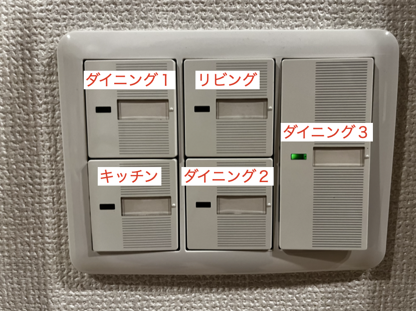 我が家は1LDKですが、初めて見たとき、まるで豪邸のような照明スイッチの多さに驚きました。