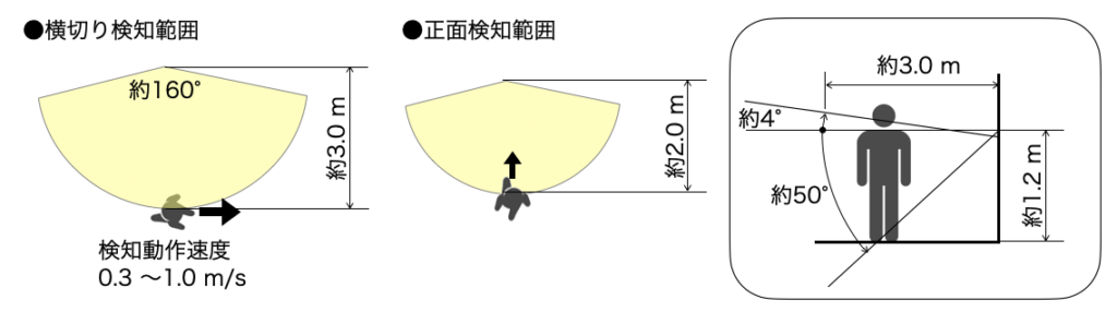 検知範囲が広すぎると、廊下を通っただけで反応することもあるため、適切な範囲に調整するのがおすすめです。