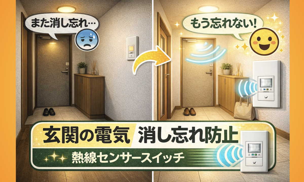 玄関の照明をよく消し忘れる方は、ぜひ熱線センサ付きスイッチの導入を検討してみてください。